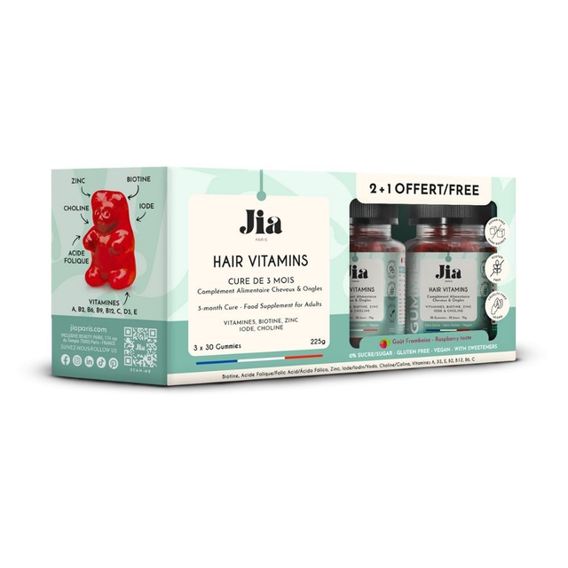 Gummies Hair Vitamins (Volume & fall) van JIA Paris versterken de gezondheid van alle haartypes , stoppen haaruitval en geven volume .